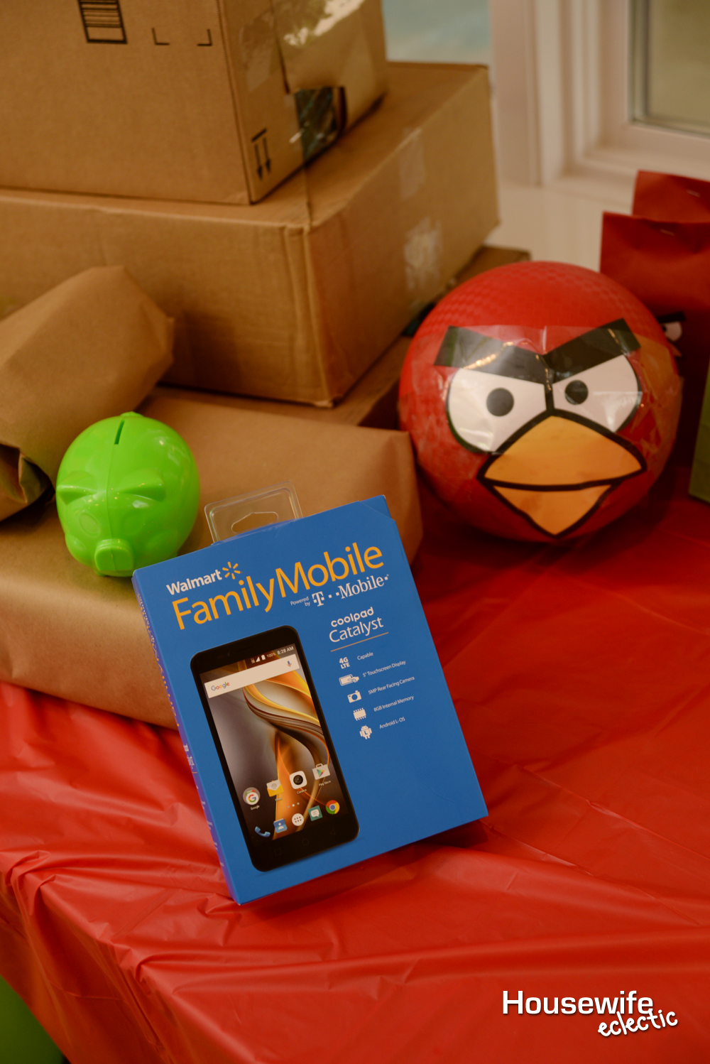 The kids loved playing “real” Angry Birds in the backyard. It ended up raining during our party so they had to play under the porch, but the kids still had a blast. It was fun to have boxes of all different sizes to make different structures.