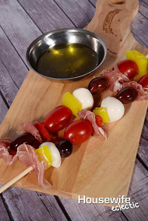 There are so many different ways to make an antipasto bar, but I prefer them on skewers, everything is more fun to eat on a skewer and then people can load up and walk away from them table instead of crowding it.