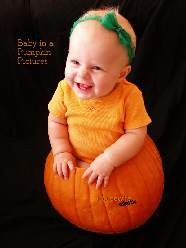 Pumpkins are the perfect October prop. It works best with infants 6-12 months old, but can be used for older children as long as you can find a big enough pumpkin, and there are some pretty big pumpkins out there. π