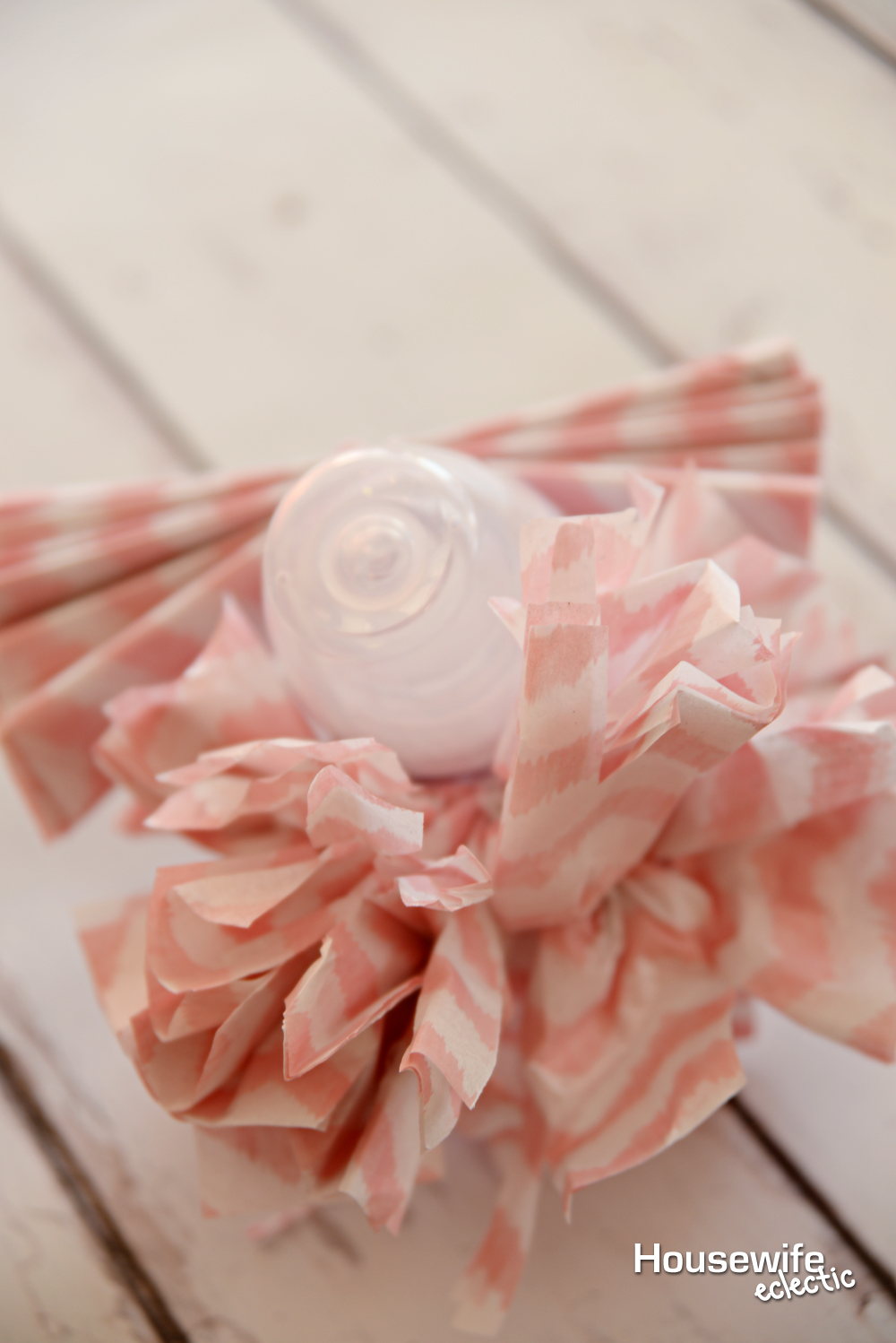 As you get more layers, you can start to pull them down more so that they look more like petals with the bottle as the center.
