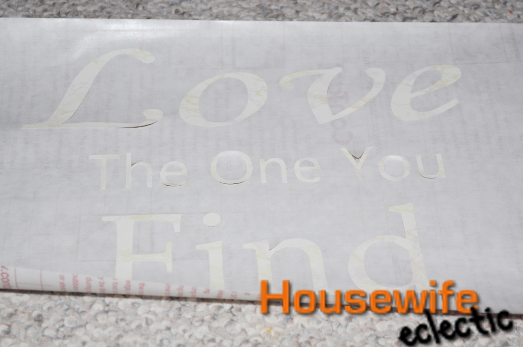 If you don’t have a craft cutter, you can still make this project. You can print out the letters in a font you like and then use your knife to cut out the contact paper, using the printout as a pattern. I am lucky enough to have a husband who got sick of my whining and bought me a Silhouette, so I cut my project using that.