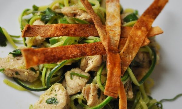 Cilantro Lime Chicken Zoodles with Homemade Baked Tortilla Strips