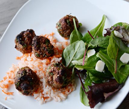 Asian-Inspired Turkey Meatballs with Carrot Rice