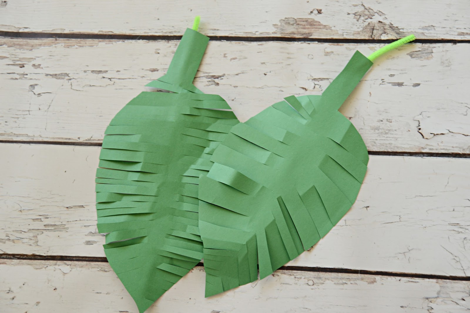 Draw a long leaf on an entire piece of green construction paper. Cut the leaf out. Draw a line down the center of the leaf and let the children cut fringe into the leaf, telling them to not cross the line. Add a pipe cleaner to the back of the leaf to give it some stability so the children can wave it.