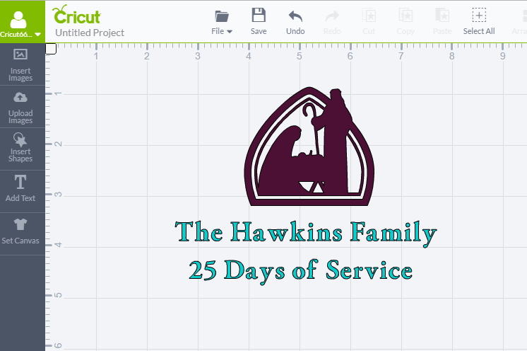 To make these ornaments, select the great big blue, Create a New Project button on the Cricut Explore site. You can either search the Cricut library for a nativity image (there are several) or you can do an image search for a nativity silhouette. Upload your image and select whether the image is a simple image, moderately complex image, or complex image. This silhouette nativity image would be considered a simple image. Simple images are the easiest to trace, so look for an image with high-contrast colors. Insert them into Design Space and move the image around until you have it where you want.