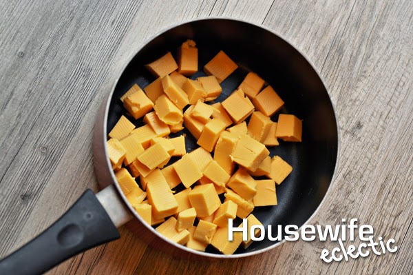 - Add the cheese and milk into a saucepan or skillet over medium heat.