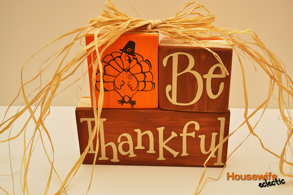 Arrange the blocks so that one block is flipped around to show the opposite color. I made the block that had my turkey/pumpkin on it be the block that was offset color wise. Take a credit card and apply your vinyl to the blocks.