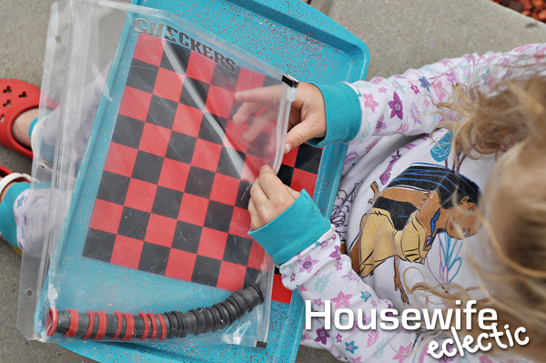 Being able to store it all away is a must with car games. I know my kiddos would adore playing checkers!