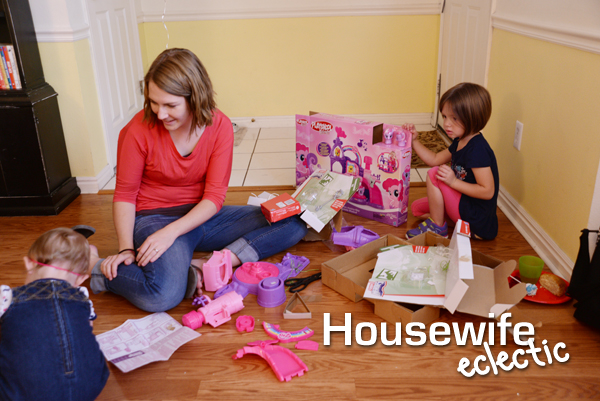 My Little Pony has a new Playskool My Little Pony Friends line that is a preschool friendly version of My Little Pony. I am SO thrilled they have started this line. My toddler loves her sister’s ponies, but it drives her sister crazy when she messes up their hair. Now sister has her own ponies to play with, but let’s be honest, both my girls love the new playset.