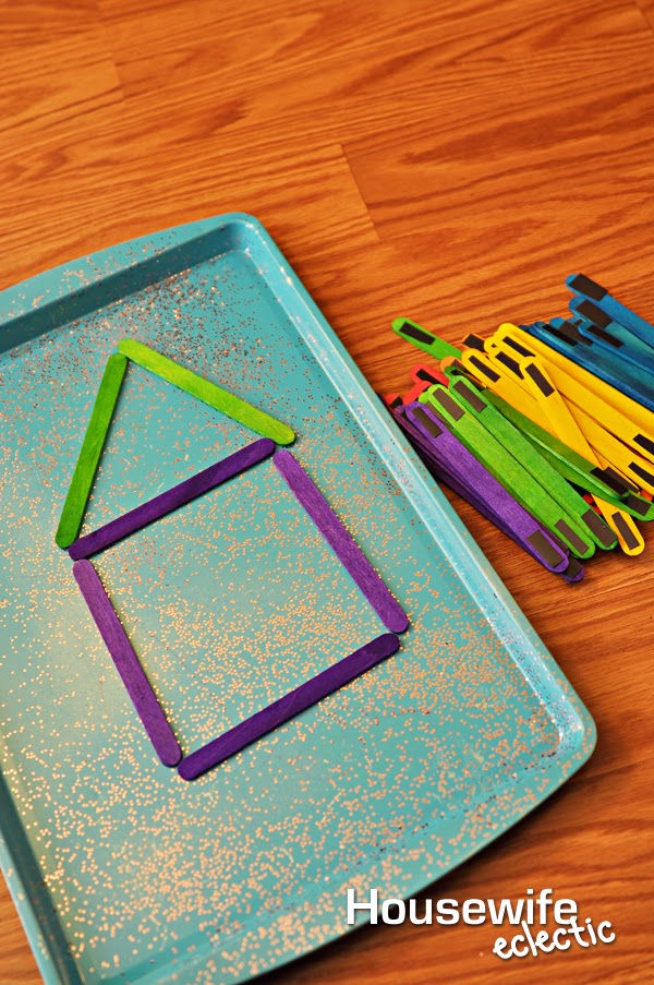 Magnetic Building Sticks– Buy a package of colored popsicle sticks and add magnetic tape to the back of them. Bring a cookie sheet and let your kids build to their hearts content without worrying about the pieces going every where. Find the full instructions here- Magnetic Building Sticks.