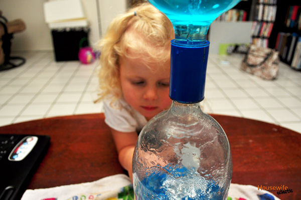 My daughter was obsessed with the rain storm that happens in the bottom bottle, it took me awhile to get her to watch the tornadoes but when she saw what she was looking for she was enthralled.