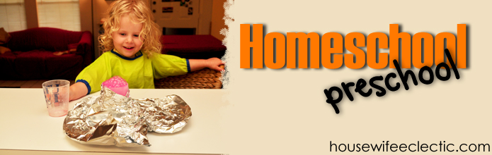 This lesson is still a clear favorite in our house. She tells everybody she meets that she knows what a volcano is. Coming up soon: Tornadoes and Counting and Sorting.