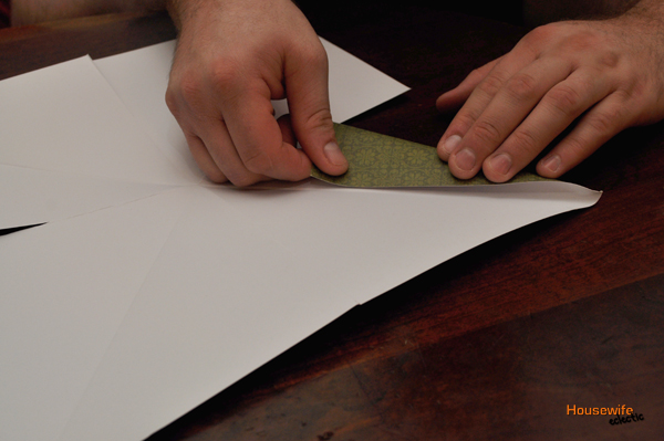 Take one edge of one of the diamonds and fold it to the middle, kind of like when you are making a paper airplane.