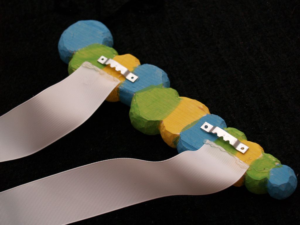 Then you take a length of grosgrain ribbon, I usually cut mine to about 30 inches of ribbon. This particular bow holder was made to fit two ribbons, but I can usually only fit one.