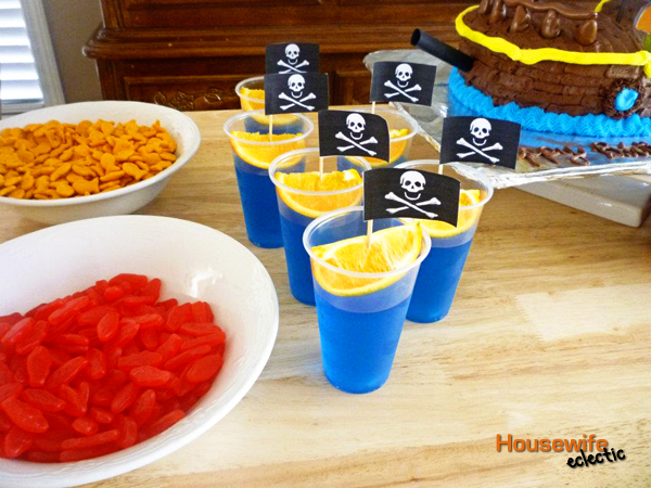 The snacks all had a water theme, Swedish Fish, Goldfish Crackers and slices of orange floating on a Jello sea.