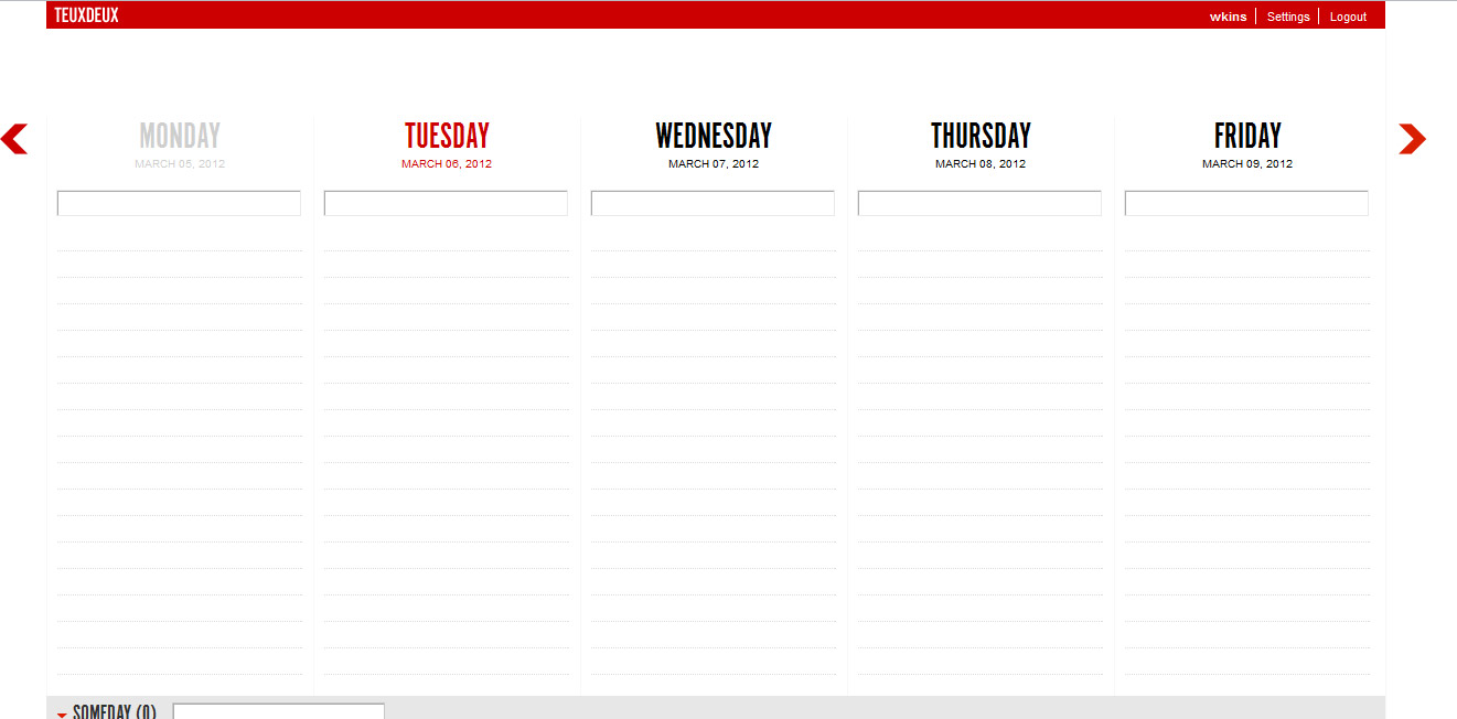 TeuxDeux is a straightforward list maker that doesn’t bother with due dates, times, who’s involved or anything of the sort. All you have is a simple week-at-a-glance view where you type in what you need to do and nothing else. Plan your week out quickly and see how much you have on any given day. This has helped me balance out my weeks better.