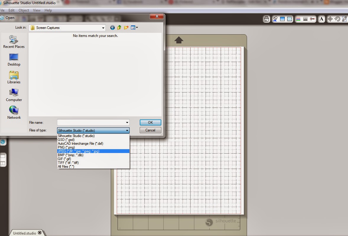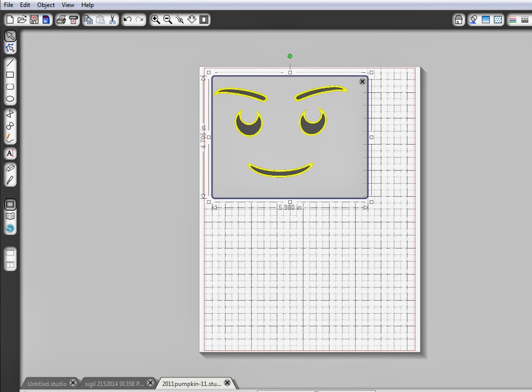 First you will need to find a picture of a Lego head to trace from. I used this free template for carving a pumpkin found here. Open the image in Silhouette. You will need to chose JPEG images from the drop down menu when looking for it on your computer.