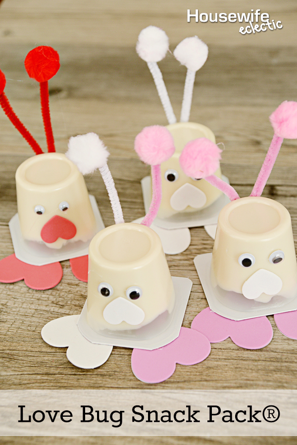 These little Snack Pack love bugs are super stinking cute!!! I'd love to sit down and make this craft with my niece. Great idea! Pinning for later 🙂