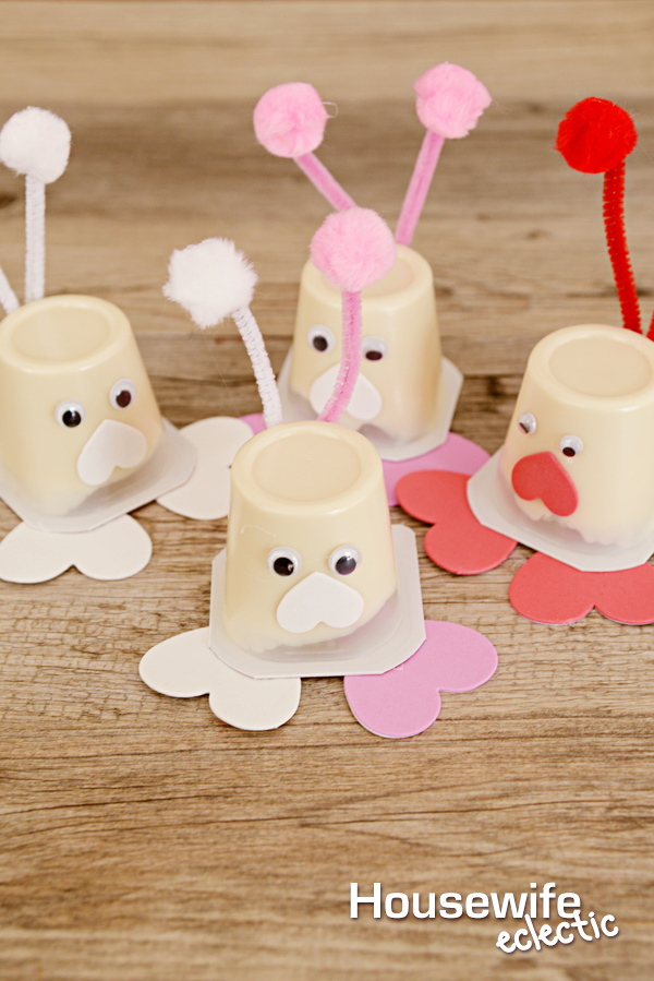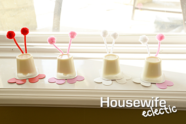 First of all, I love those vanilla pudding snack cups! What a cute idea for kids on Valentine's Day! My son & I will have a blast trying this for ourselves.