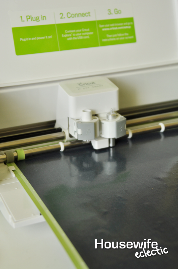 Heat Transfer goes onto your mat with the shiny side down. Set your machine to iron-on and then hit the go button. Remember when cutting heat transfer with a machine, you always need to be sure to flip/mirror your images or you text will be backwards when you iron it on. For this project is isn’t crucial to flip the images, but I do anyways.