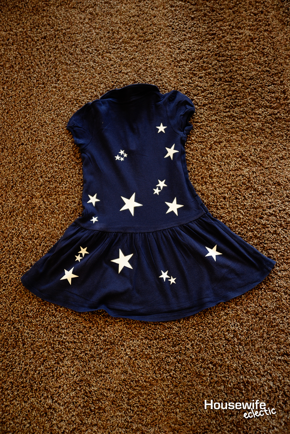 The planets and some of the stars go on the front of the dress and then stars of all different sizes go on the back as well.