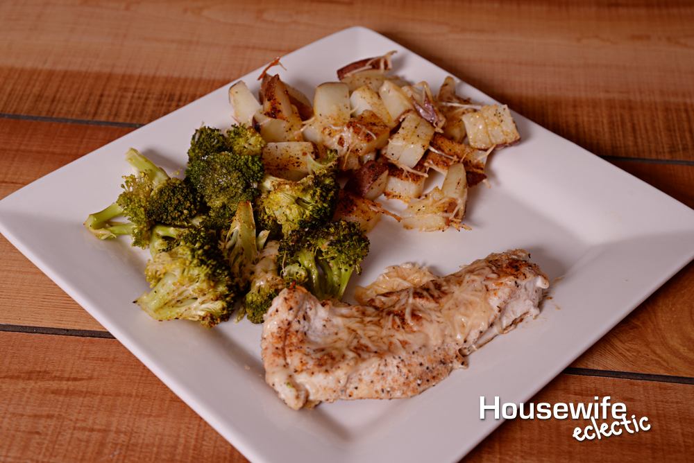 This dish comes together so quickly and the three elements work so well together. The chicken is tender and the Parmesan and seasoning blend really bring out the flavor in the broccoli and potatoes. Dip it in a little ranch dressing and you’re in business!
