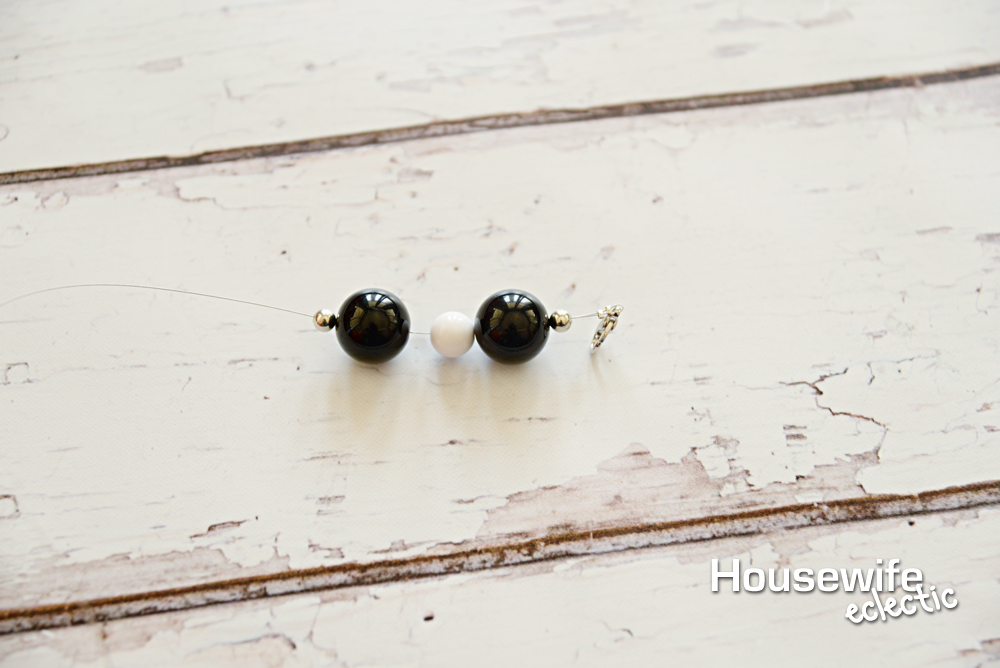 After your beads are crimped. you are ready to add your necklace beads. The idea behind this necklace is to make the beads look like little Oreo Cookies with white beads sandwiched in between black ones. Here is my necklace pattern for this necklace: