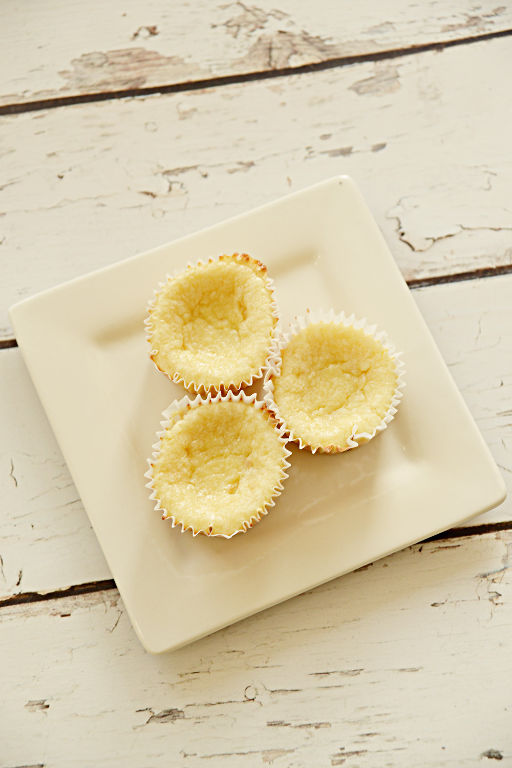 Mix together the cream cheese, sugar, vanilla and eggs together until very smooth. Add a wafer to the bottom of each muffin tin with the flat side of the wafer down.