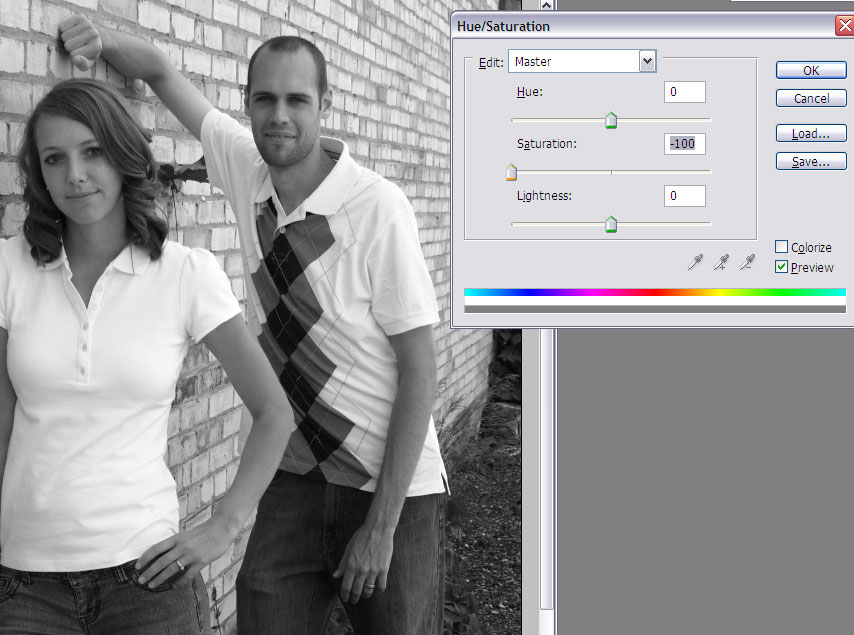 Step 3: Drag the Saturation slider down to -100. Your photo is now black and white.
