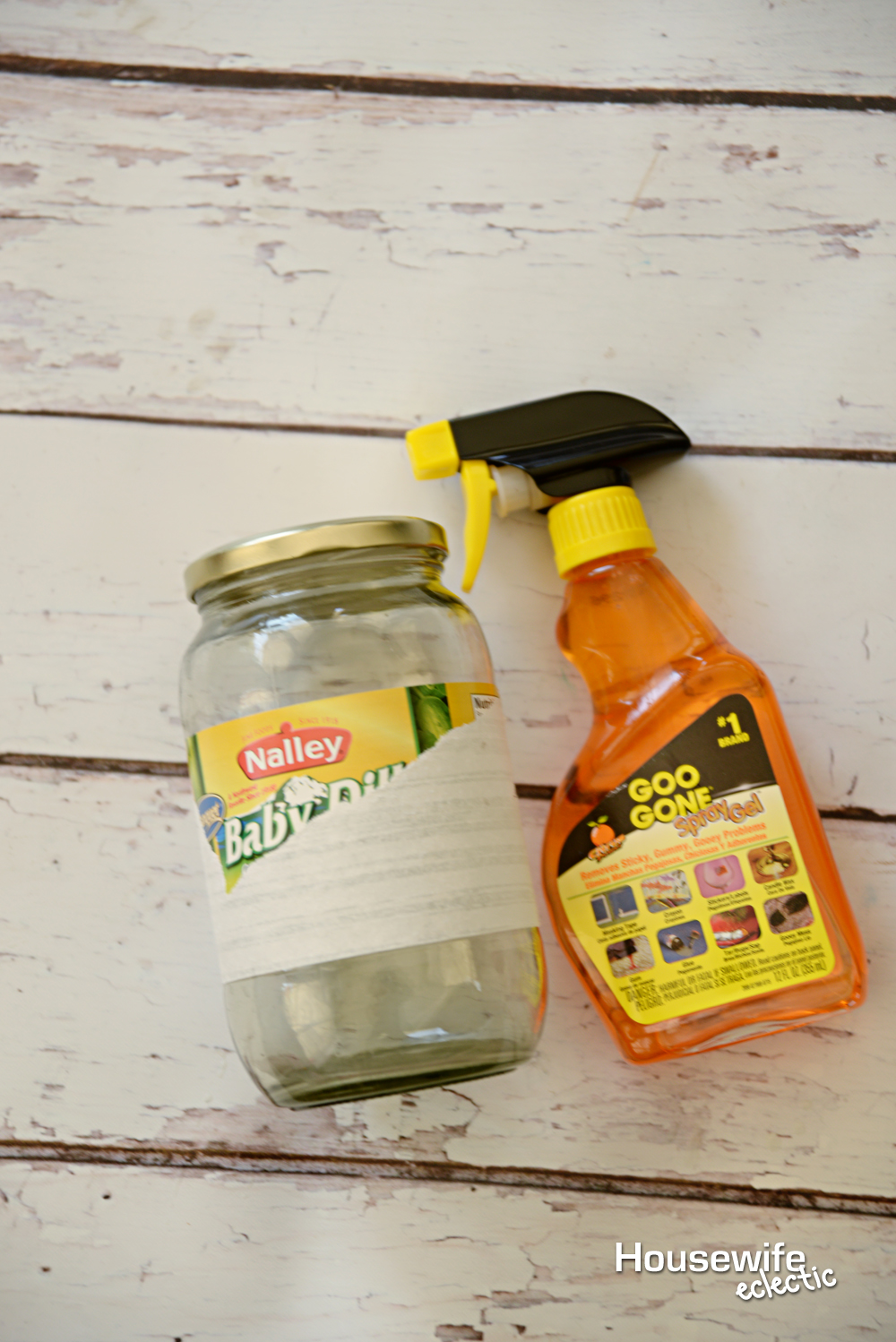 The first thing you need to do is remove the label from your jar. I love to use Goo Gone to remove labels because it makes it so much faster and less frustrating!