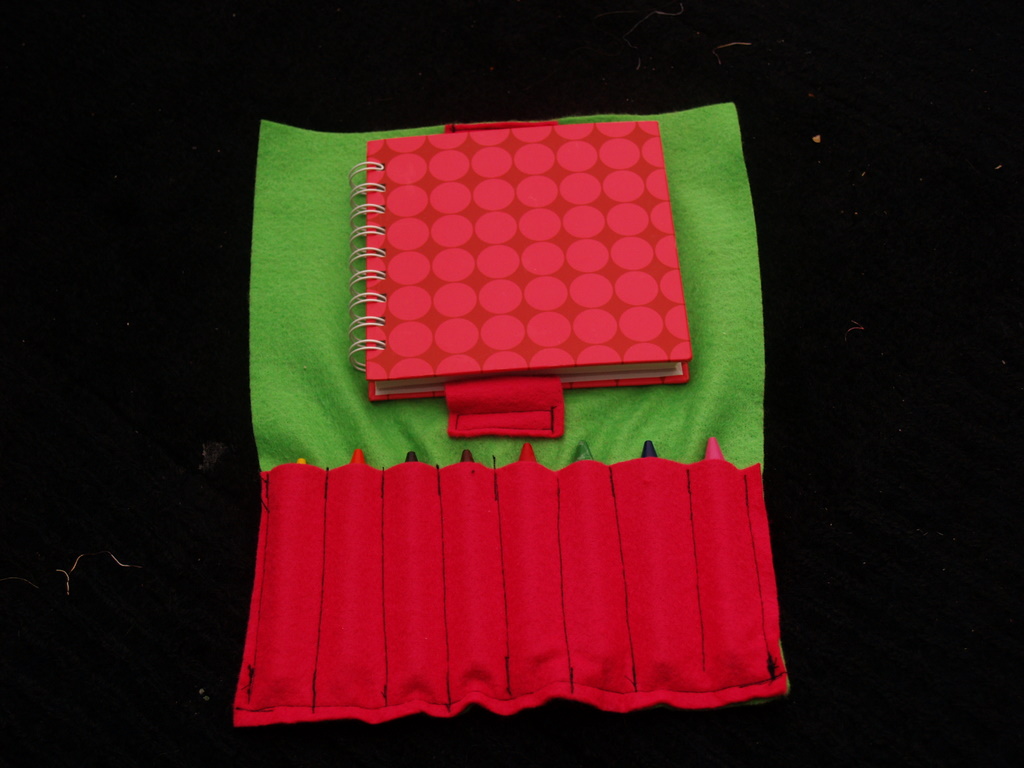 What I would do differently if I were to do it again: I would sew the strip horizontally instead of vertically. I think the notepad would stay a little better. I would also sew my pockets to fit the crayola twist crayons because that is what I prefer my daughter color with. I love this page and actually want to make some small books with just this as the element.