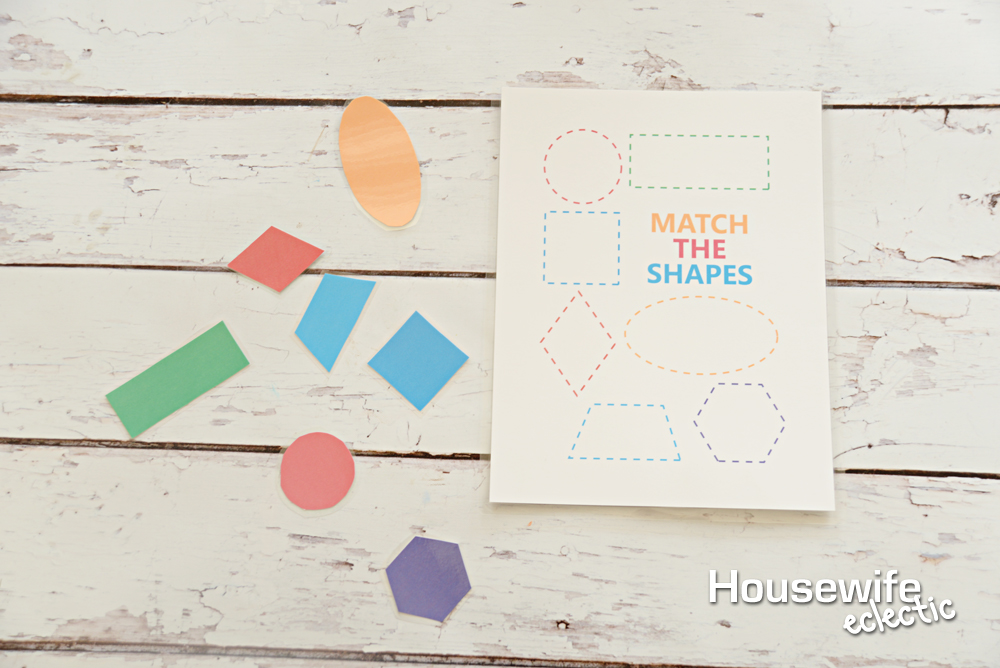 Print the pages in color and laminate the background page. Cut out each of the shapes and then laminate them as well. After they are laminated, cut them out again. There are several ways you can make the cookies stick to the background. You can add small squares of felt to the back of each card and a piece on each shape on the background. You can also use velcro squares instead of felt. I prefer to use magnet tape on each of the cards and the background.