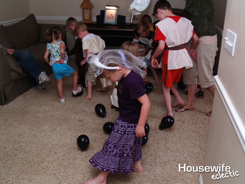 Storm Trooper Battle– Print off small pictures of a Storm Trooper. Blow up 20 or so black balloons with a Storm Trooper picture in 5 or 6 of them. Put them on the floor and let the kids stomp on them to pop them. Tell them their goal is to find all the Storm Troopers. The kids LOVED this part of the party. Who doesn’t want to stomp a balloon?