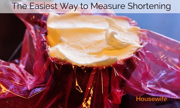It seems like I am always using shortening. In my homemade frosting, my banana bread and other baked goods. Every time I use shortening, I feel like I spent five minutes scraping it out of the measuring cup and then another five minutes washing the measuring cup afterwards. It was enough to make me not […]