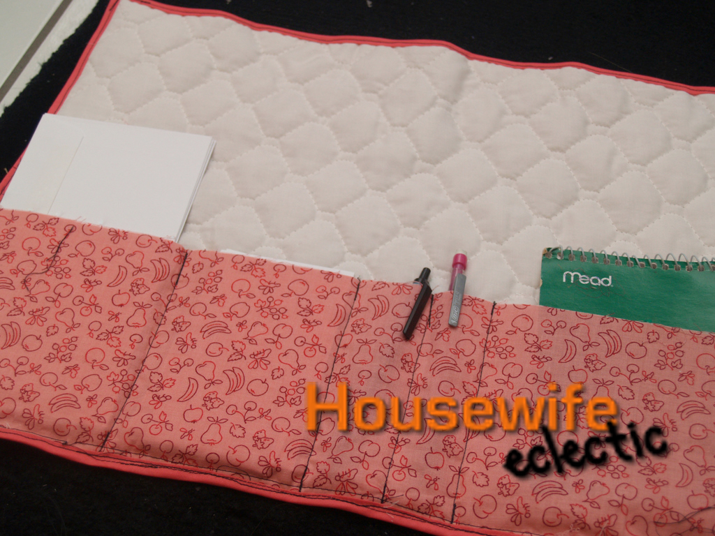 I use my organizer to hold envelopes, stamps and the note cards I use to write letters but it can be used for many different purposes. For instance, you can make it to fit your scissors, rotary cutter, measure tape, seam ripper and other notions for sewing ease.
