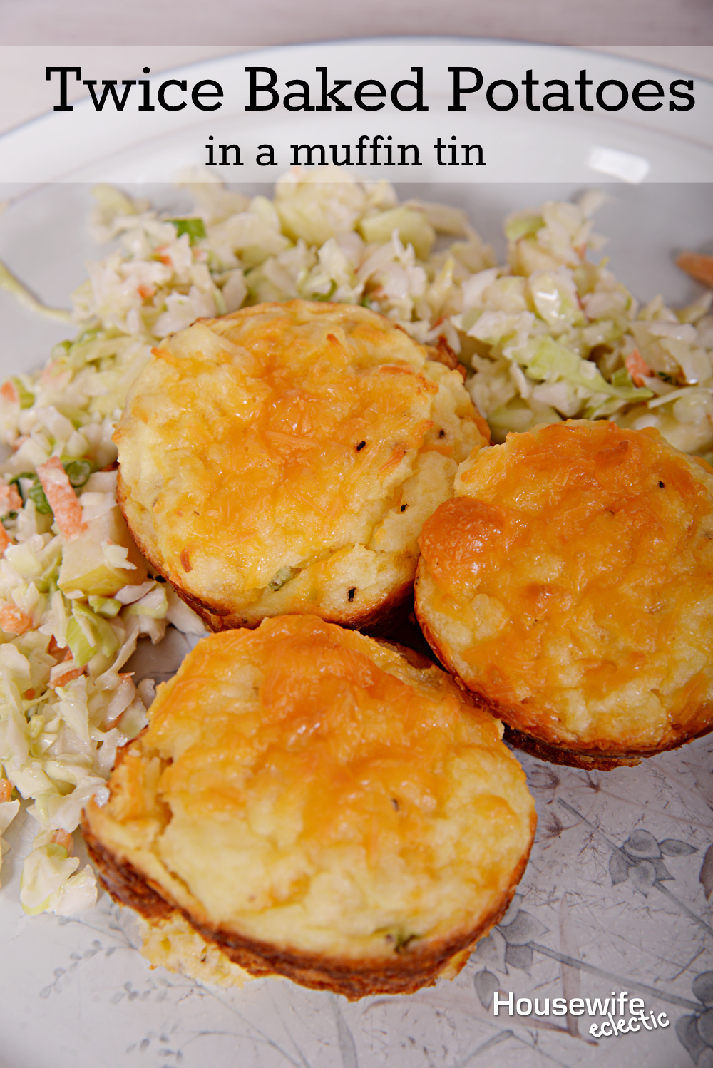 I love twice baked potatoes, the are creamy and full of flavor. We used the muffin tin technique for these and they have perfect crispy edges and a cheesy top.