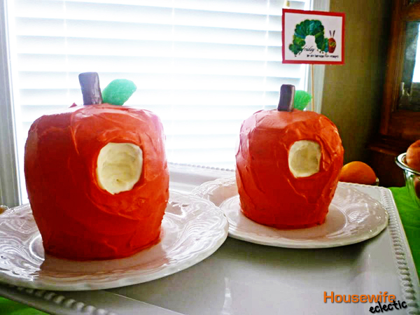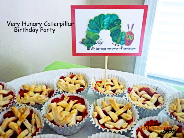 The spread of food. Different foods that the caterpillar ate through in the book were featured. Like the little cherry pies in the beginning of the post.