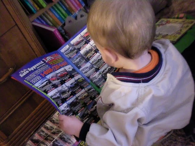 We’ve been car shopping lately. Even my little guy has gotten in on the action: