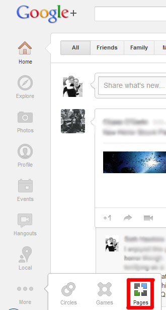 To get started, visit plus.google.com and make sure you’re logged in to your Google account. When you arrive at your home page, look down to the bottom and click on the button that has the … and select Pages.