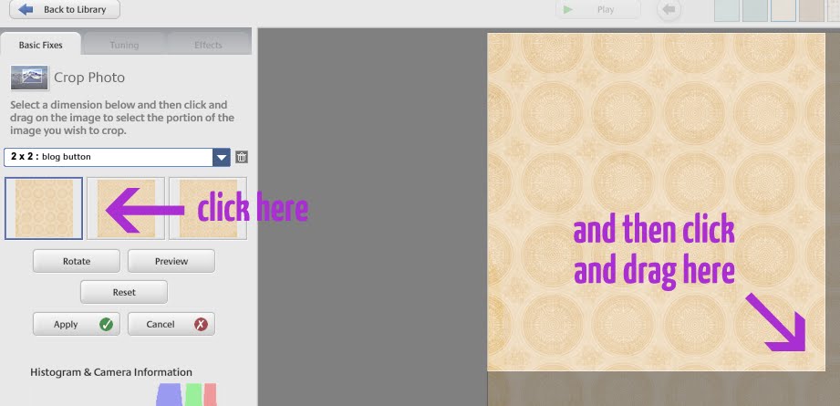 4. With your new Blog Button aspect ratio selected from the drop-down, click on one of the crop options below the menu to place the cropping frame on your photo.