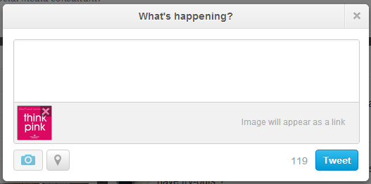 When you attach a photo, it doesn’t automatically appear with the tweet, like it does on a Facebook post. Instead, it adds a link, taking up some of your 140 characters. So, you have to plan around that when you add a picture. When someone clicks on the link in your tweet, they will see your picture.