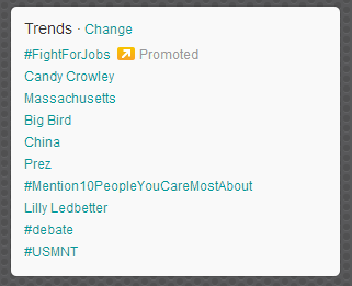 - Trends – topics that many Twitter users are talking about at a certain time. Trends change throughout the day and are usually matched up with a certain hashtag.