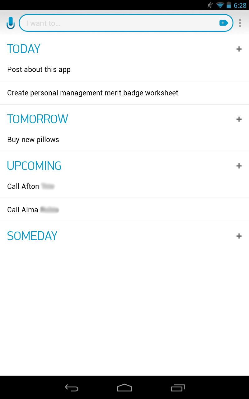 The nice thing about the Any.Do moment is it addresses one of the great needs of to-do apps: forcing you to review your tasks. Every day you have a chance to really look at what you need to do and find the best time that fits in your schedule.