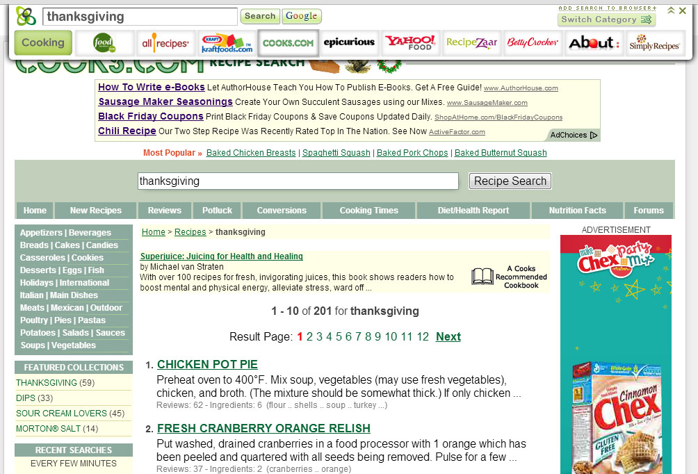 For instance, let’s say I want to get a jumpstart on Thanksgiving; I want to find a new recipe to impress the family at the big feast. All I have to do is type in Thanksgiving, scroll down to the cooking category and select a source within that category.