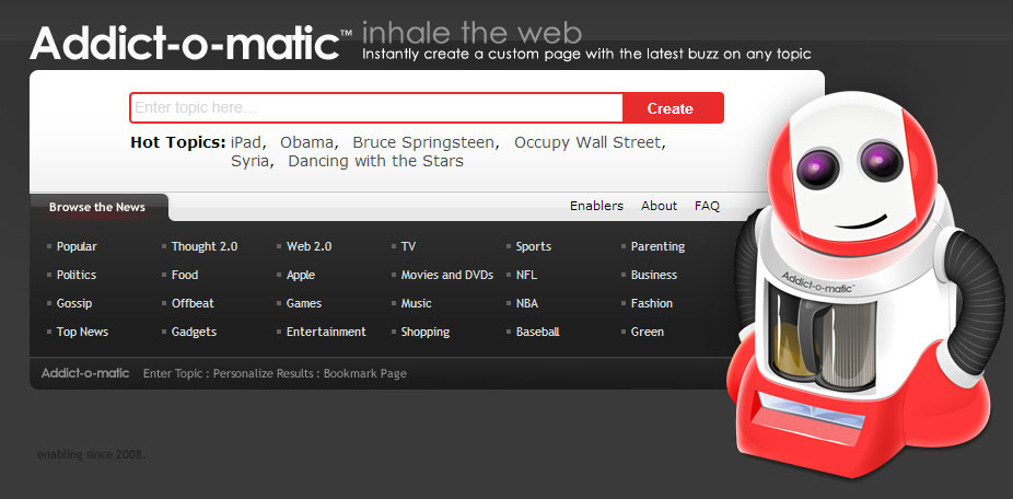 Already you’re interested because the name sounds so awesome. No, it won’t get you hooked on coffee or chocolate, but it may help you find unique (and current) content on the web. Because Addict-o-matic is a search engine, it should be fairly obvious what to do…